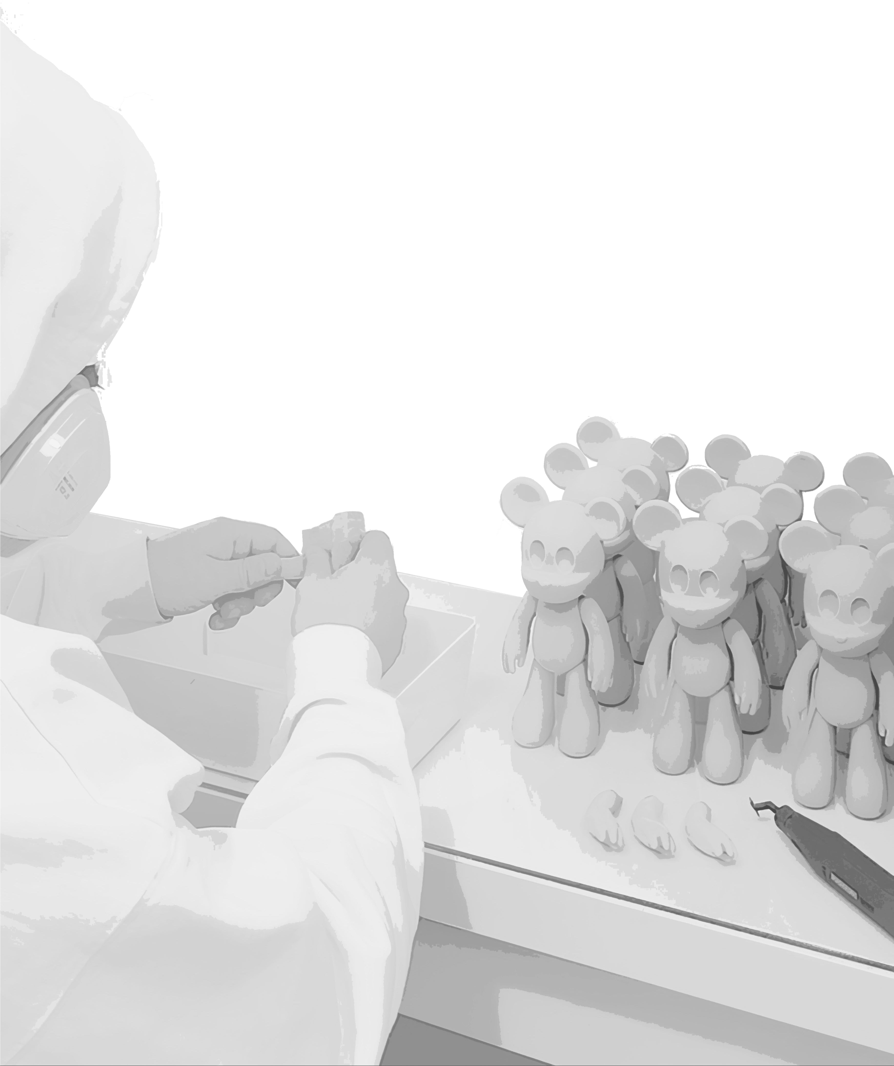 Our products are modeled in 3D then printed using resin printer. A long sanding is necessary as well as a long painting and varnishing process. Our packaging are also assembled by hand. Each art toy may have slight irregularities, which are proof of its authentic craftsmanship.